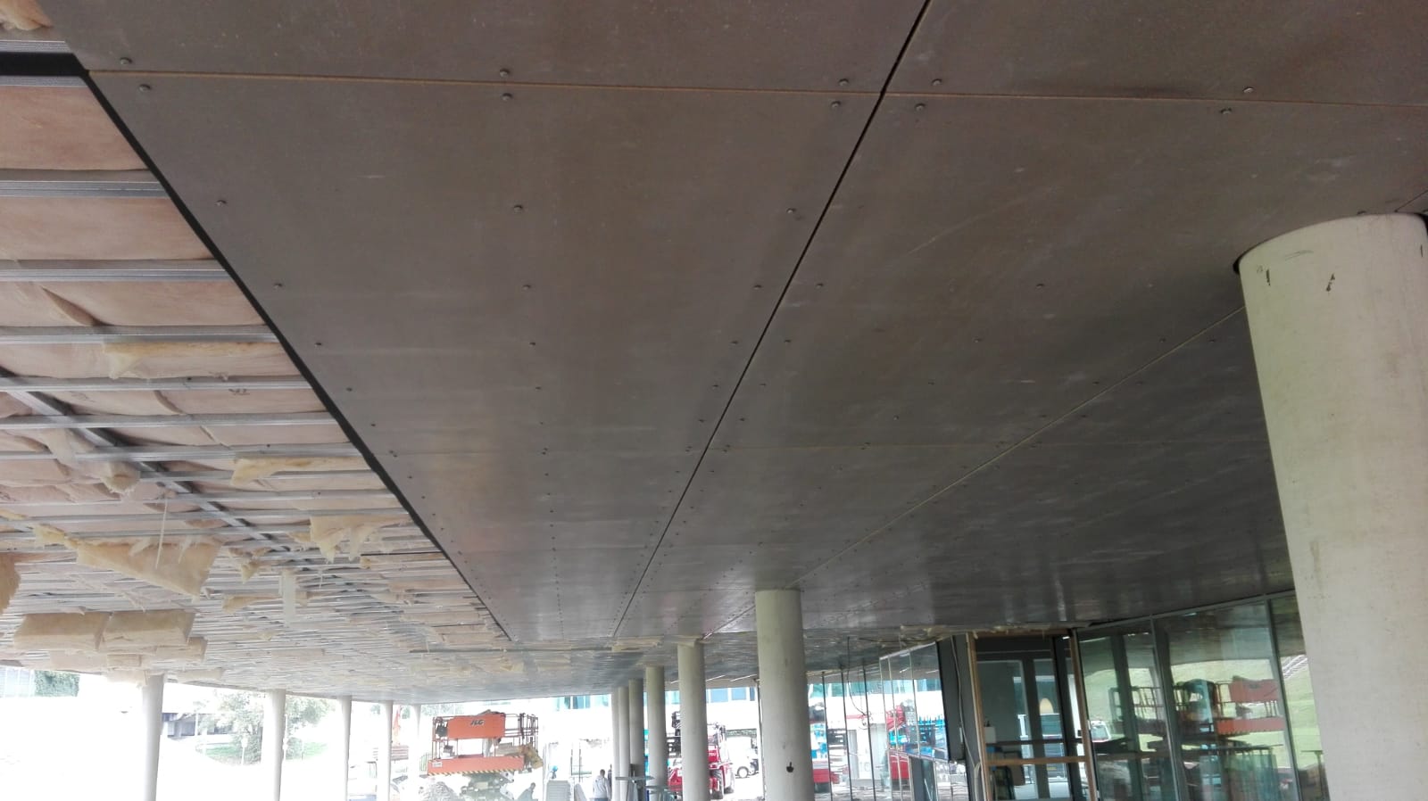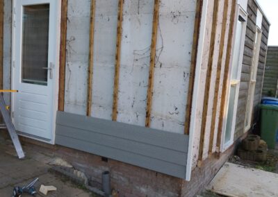 Installatie van moderne, duurzame en weerbestendige gevelpanelen.