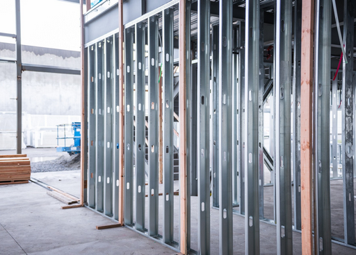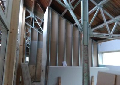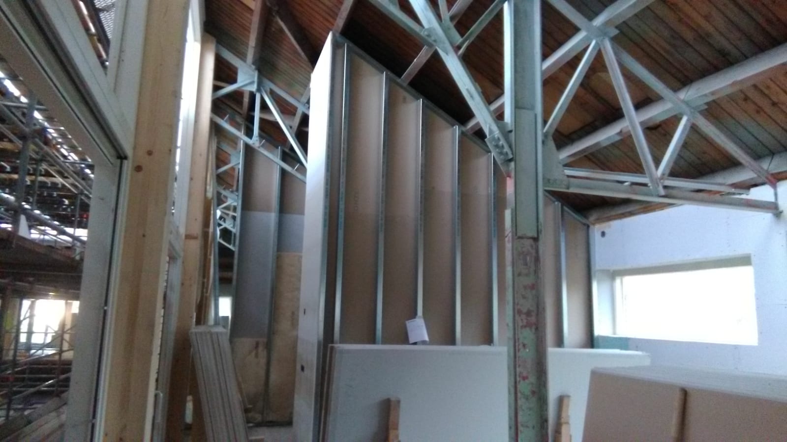 Bouw van lichte scheidingswanden en verlaagde plafonds in houten en metalen profielen.