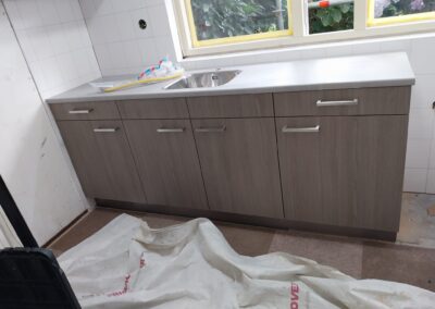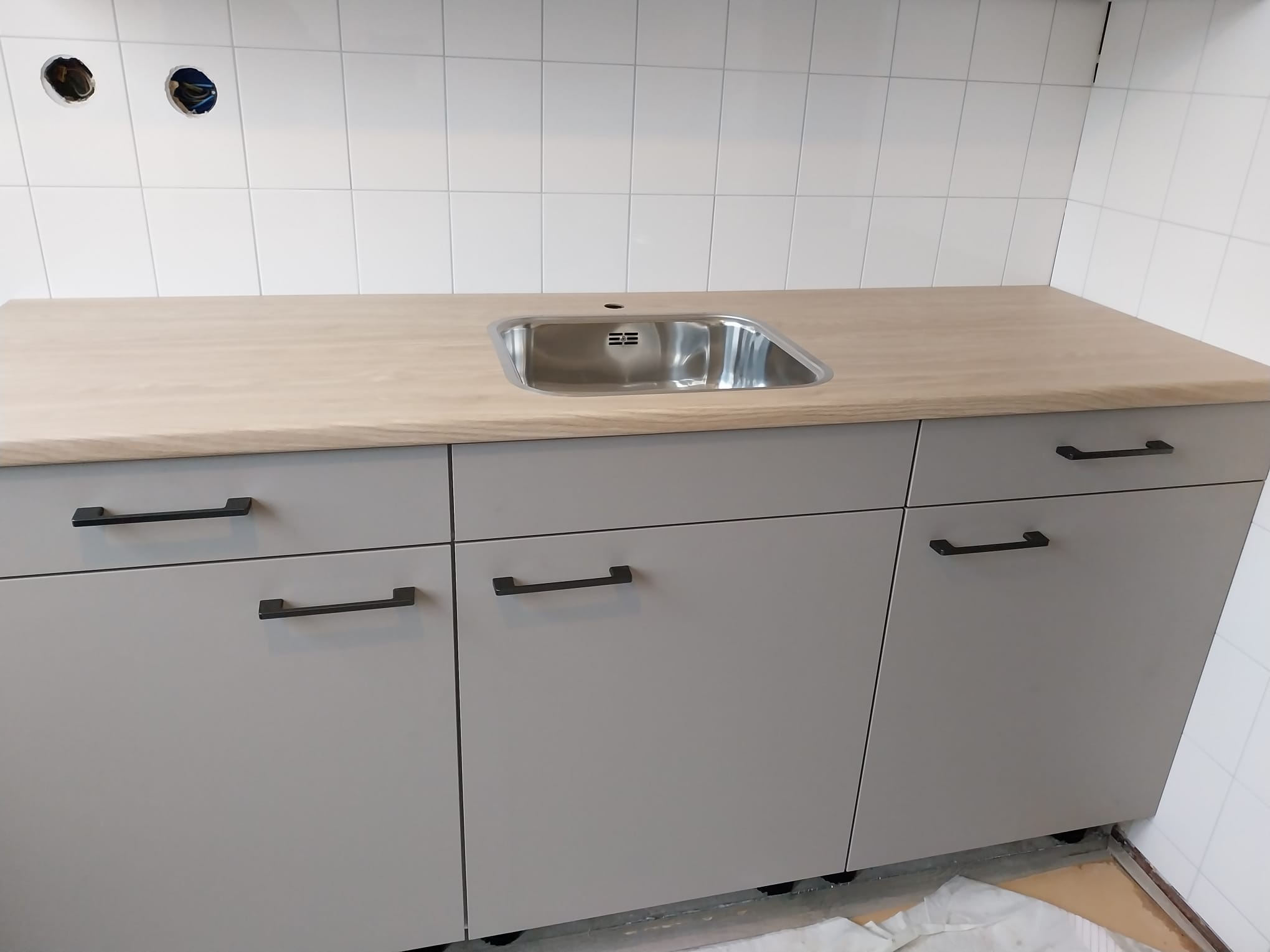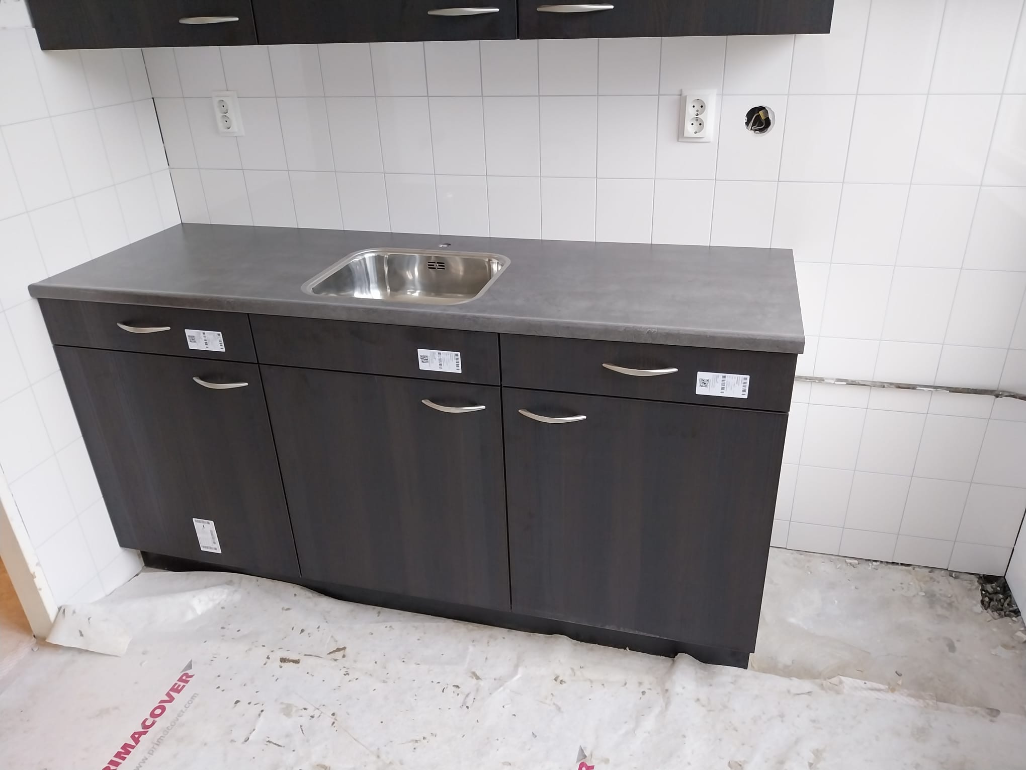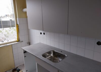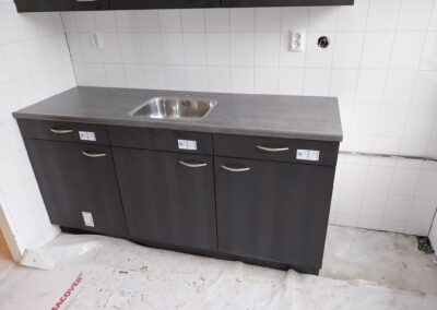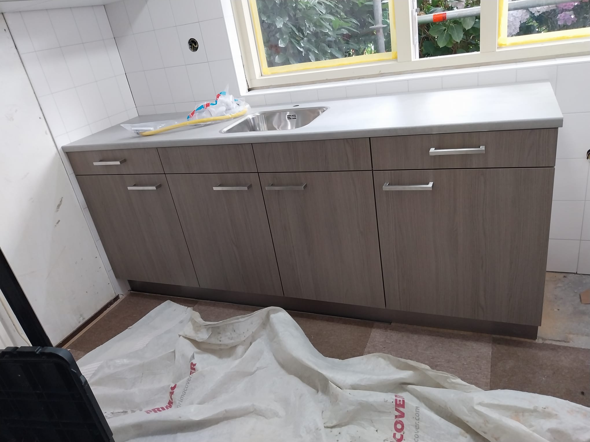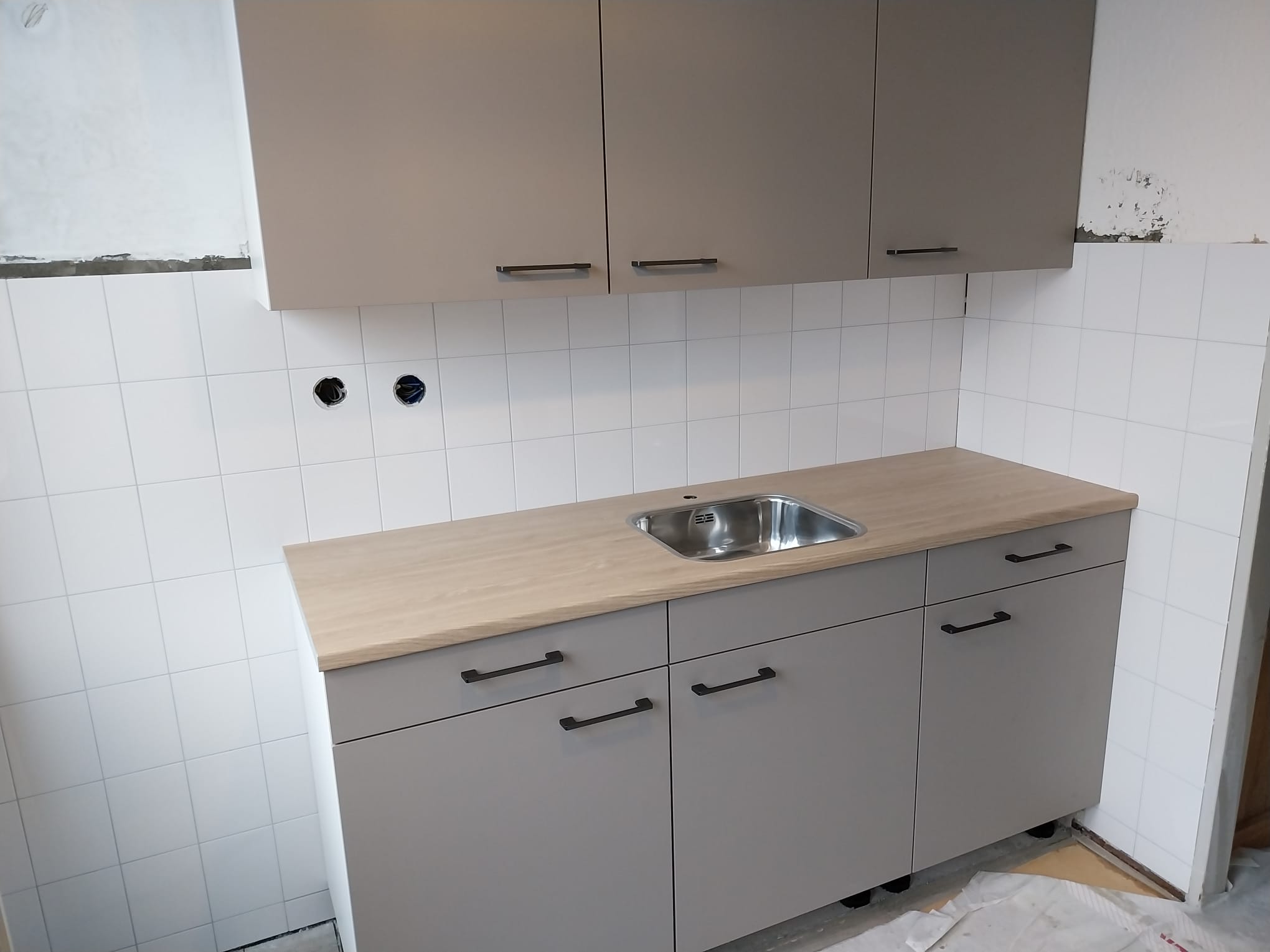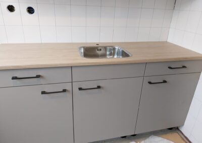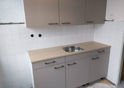 Uitgebreide keukenmontage en -installatie, inclusief montage van apparatuur en afwerkingsdetails.